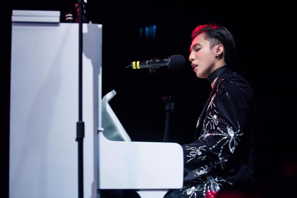 Nam ca sĩ còn trực tiếp đệm đàn cho tiết mục.