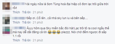 “Vài ngày nữa là Sơn Tùng hóa đại hiệp cô đơn lạc trôi giữa trời rồi!” - Fan của anh chàng tỏ ra phấn khích vì sắp được xem “bom tấn” từ thần tượng vào 0 giờ ngày 1/1 tới.