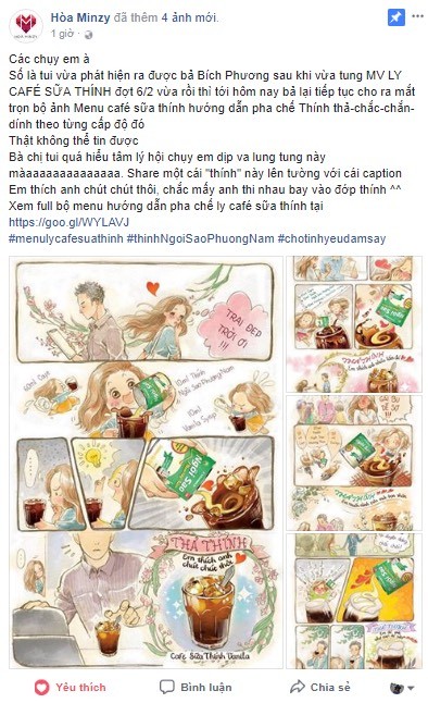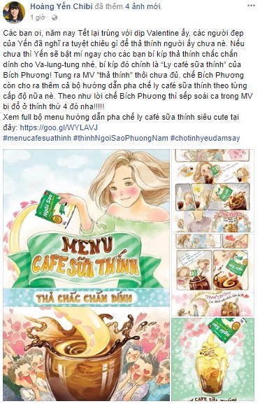 Sau khi thoát ải FA ngoạn mục bằng Ly cà phê sữa thính, cư dân mạng liên tục săn hỏi Bích Phương công thức “pha chế thính” hòng cưa đổ soái ca. Vì thế, không chỉ chia sẻ một công thức được dùng trong MV, “thánh thính” Bích Phương tung luôn nguyên bộ “thả thính tuyệt đỉnh công phu” mang tên Menu cà phê sữa thính.
