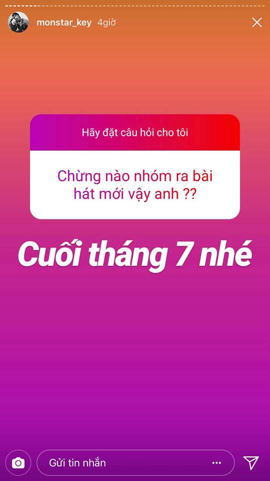 Và sau sản phẩm đầu tiên trong chuỗi dự án comeback của mình, các chàng trai nhà St. 319 có vẻ như đang sẵn sàng để tiếp tục ra mắt ca khúc tiếp theo. Mới đây, ngay trên trang Instagram cá nhân, vẫn là anh chàng Key được mệnh danh là “thánh thả thính” quen thuộc của nhóm đã hé lộ thông tin sản phẩm tiếp theo sẽ ra mắt vào cuối tháng 7. Bên cạnh đó, “ông bầu” Aiden cũng tung ra những hình ảnh “nhá hàng” về sản phẩm tiếp theo khiến người hâm mộ vô cùng háo hức.