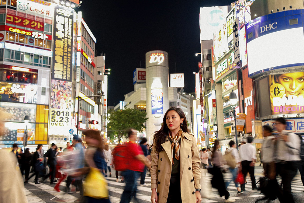 Văn Mai Hương giữa đường phố Nhật Bản tấp nập.