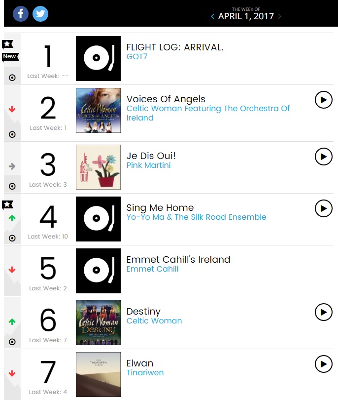 GOT7 đứng thứ 16 tại BXH Social 50 và Flight Log: Arrival đứng hạng 3 tại Heatseekers Albums - đều là những BXH trực thuộc Billboard. Bên cạnh đó, GOT7 cũng vừa có chiến thắng đầu tiên trên sân khấu The Show ngày 21/3 vừa qua.