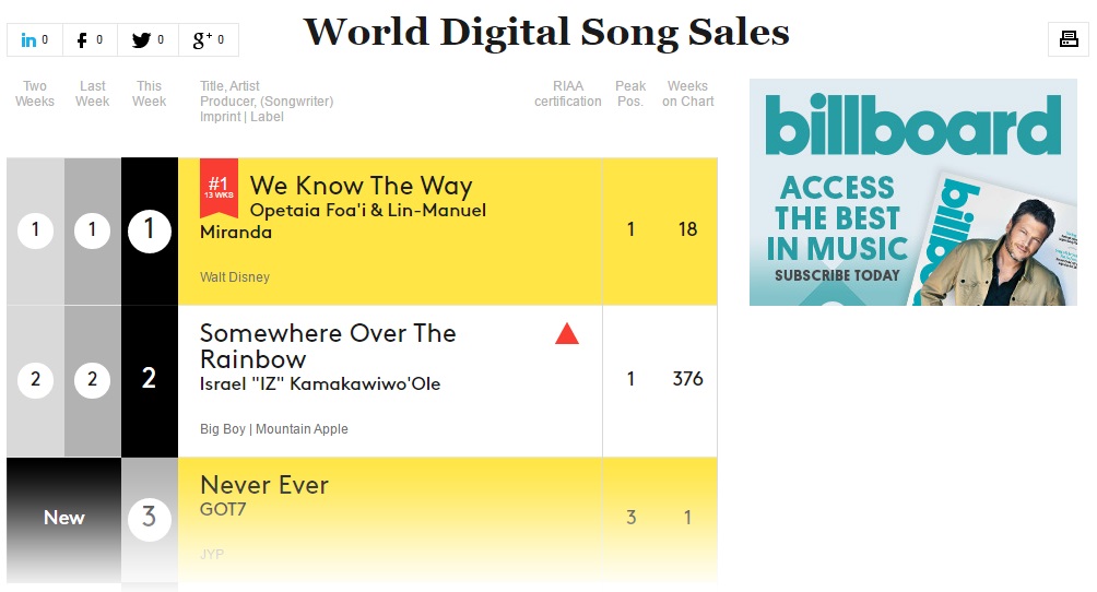 Ngoài ra, ca khúc Never Ever cũng đạt vị trí thứ 3 tại BXH World Digital Songs Sales.