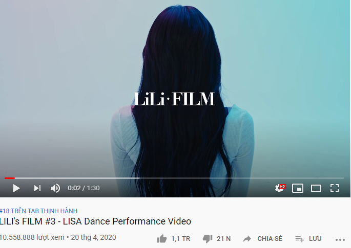 Cách đây vài ngày, Lisa khiến cộng đồng người hâm mộ Kpop được phen “chao đảo” với video vũ đạo bất ngờ được phát hành sau thời gian dài không có hoạt động âm nhạc nào. Ở video vũ đạo thứ 3 trên kênh Youtube riêng của Lisa lần này, nàng main dancer nhà BLACKPINK đã thể hiện một hình ảnh hoàn toàn mới, đó là những bước nhảy phối hợp cùng giày cao gót và sàn nhà, tạo nên những bước chuyển động quyến rũ mang thương hiệu độc quyền của Lisa. Cùng với danh tiếng đang ngày càng tăng cao, sau khi video này được phát hành, Lisa lập tức cho thấy sức ảnh hưởng khổng lồ của mình khi thu về lượt xem ấn tượng, trending ở nhiều quốc gia và đạt được hơn 1 triệu lượt thích chưa đầy 3 ngày phát hành.