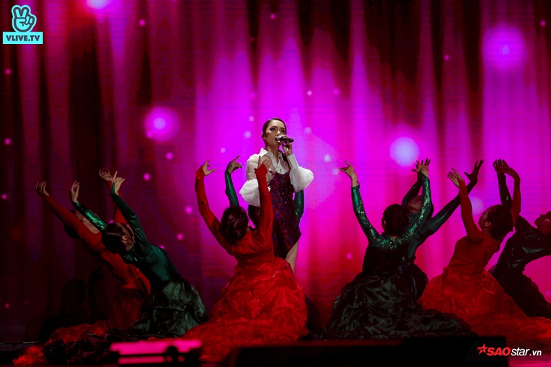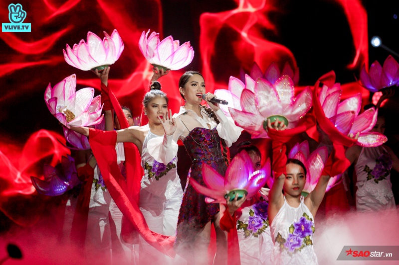 Đầu tiên, có thể kể đến sân khấu đầy huyền ảo của Hoa hậu Hương Giang. Và không có gì ngạc nhiên khi nàng Hậu đa tài mang đến sân khấu một trong những bản ballad đình đám Vpop 2018 cũng như bản hit lớn nhất trong sự nghiệp của mình cho đến hiện tại, Anh đang ở đâu đấy anh, không cần phải nói khán giả đã đồng thanh hát theo thậm chí nhiều phân đoạn còn át cả tiếng Hương Giang!
