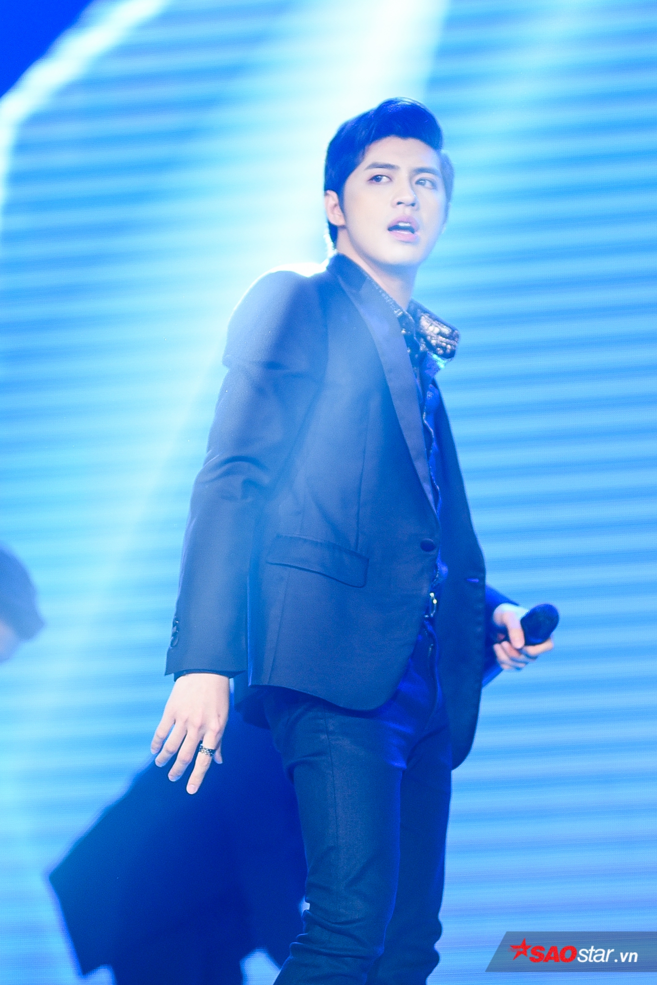 Cận cảnh vẻ điển trai của nam ca sĩ.
