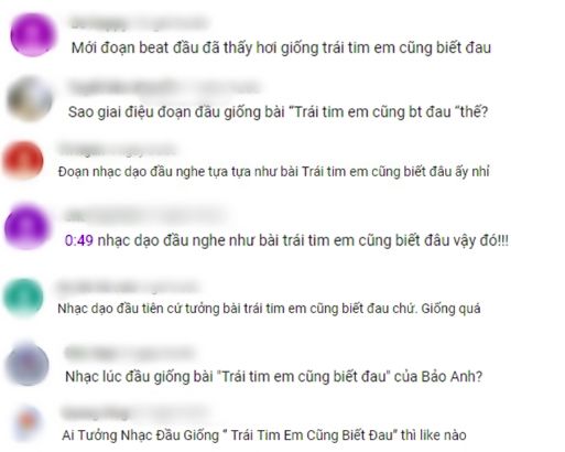 Hàng loạt bình luận của fan bày tỏ sự thắc mắc khi đoạn nhạc dạo đầu Có tất cả nhưng thiếu anh quá giống Trái tim em cũng biết đau.