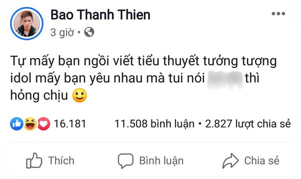 Dòng trạng thái được chia sẻ trên trang cá nhân của Vũ Cát Tường.