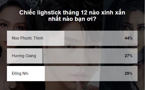Lightstick của Noo Phước Thịnh dẫn đầu với kết quả bình chọn 44%.