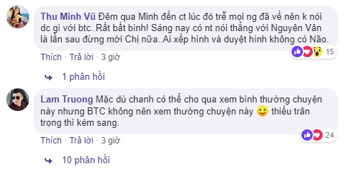 Trên dòng trạng thái này của ca sĩ Phương Thanh, Diva Thu Minh cùng nam ca sĩ Lam Trường thẳng thắn bày tỏ ý kiến bất bình với tấm poster của chương trình.