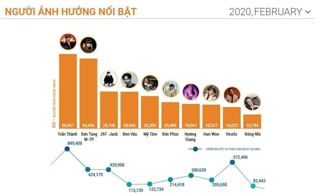 Mới đây, BXH BSI - BUZZMETRICS SOCIAL INDEX đã công bố danh sách 10 nhân vật có sức ảnh hưởng lớn nhất trên mạng xã hội Việt Nam trong tháng 2 vừa qua.