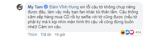 Nhưng rất tiếc, Mỹ Tâm đã “mời” Đàm Vĩnh Hưng phải xếp hàng mua đĩa như bao người khác.