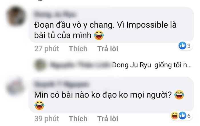 Bên cạnh những ý kiến bênh vực thì không hiếm những bình luận khẳng định rằng Vì yêu cứ đâm đầu và Impossible nghe… y hệt nhau. Một số người nhận định “thảo nào nghe lần đầu đã thấy rất quen“, tuy nhiên phải đợi đến bây giờ khi sự việc được số đông bàn tán thì mới ngớ người. Không ít ý kiến bày tỏ sự bất mãn dành cho Min cũng như những người làm việc chung với mình vì hết lần này đến lần khác, cô nàng liên tiếp dính vào các cáo buộc đạo nhạc.