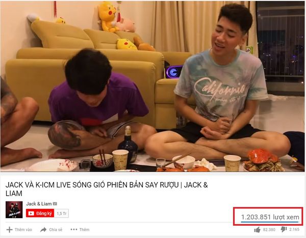 Vừa qua, các fan đã vô cùng thích thú với bản hát live Sóng gió phiên bản… bàn nhậu được đăng tải trên trang cá nhân của Jack và K-ICM. Không chỉ được các fan yêu thích và tích cực truyền tay nhau, đoạn clip này đã cán mốc 1 triệu lượt xem chỉ sau 23 giờ lên sóng.