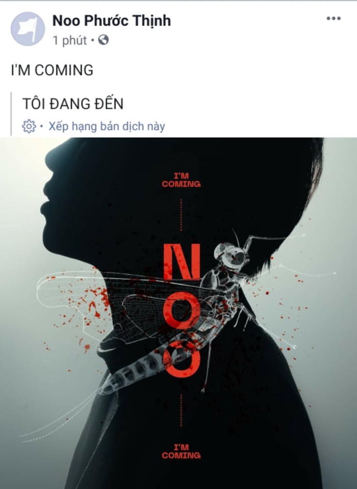 Theo đó, tấm poster mang đậm màu sắc bí ẩn, âm u với hình ảnh con thiêu thân khổng lồ đắm mình trong các vệt máu, trong khi đó bóng đen của Noo Phước Thịnh xuất hiện chớp nhoáng phía sau tạo nên một khung cảnh khá kinh dị. Cũng chỉ cách đó không lâu, Noo Phước Thịnh cũng đã khiến fan của mình xôn xao với chia sẻ ngắn gọn nhưng đầy ẩn ý trên Facebook: “My turn” (Sự trở lại của tôi).
