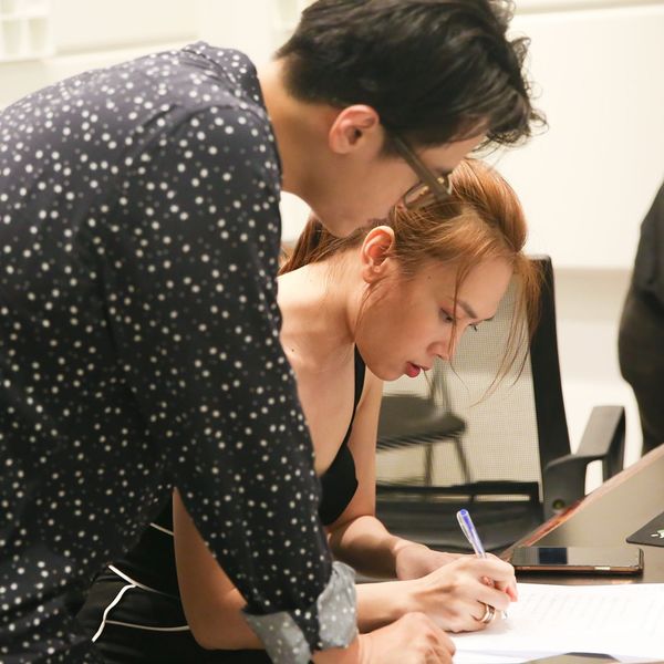 Hình ảnh Mỹ Tâm và Hà Anh Tuấn trong quá trình thu âm cho ca khúc.