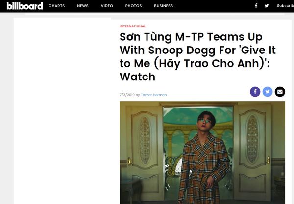 Trang chủ Billboard đưa thông tin về màn hợp tác giữa Sơn Tùng M-TP và Snoop Dogg trong sản phẩm Hãy trao cho anh.