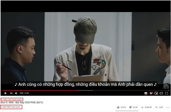 Mới đây, các fan của Đen Vâu và Min đã vô cung phấn khi chỉ sau 1 ngày lên sóng, MV Bài này chill phết đã chính thức vươn lên vị trí top 1 trending và đạt hơn 3,6 triệu lượt xem trên Youtube. Ngay từ khi ra mắt, ca khúc có tựa đề độc - lạ này đã nhanh chóng nhận được sự quan tâm của cư dân mạng cùng với lượt chia sẻ “rần rần” trên các trang mạng xã hội bởi giai điệu cùng ca từ “rất đời” của Đen Vâu và Min. Cho đến thời điểm hiện tại, MV đã đạt hơn 18 triệu lượt xem trên Youtube.