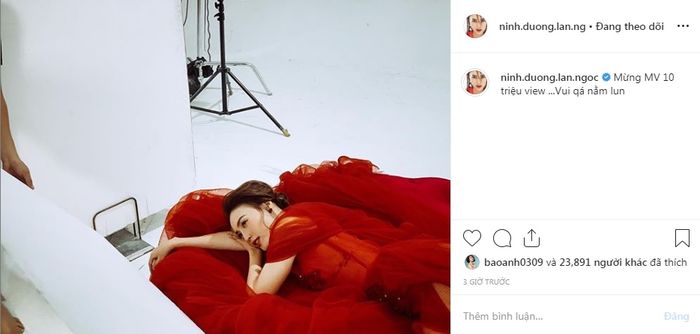 Hình ảnh và dòng trạng thái của Ninh Dương Lan Ngọc khi “ăn mừng” cho MV debut.