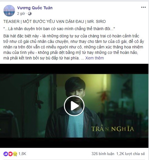 Dòng trạng thái và teaser MV được Mr. Siro đăng tải trên trang cá nhân.