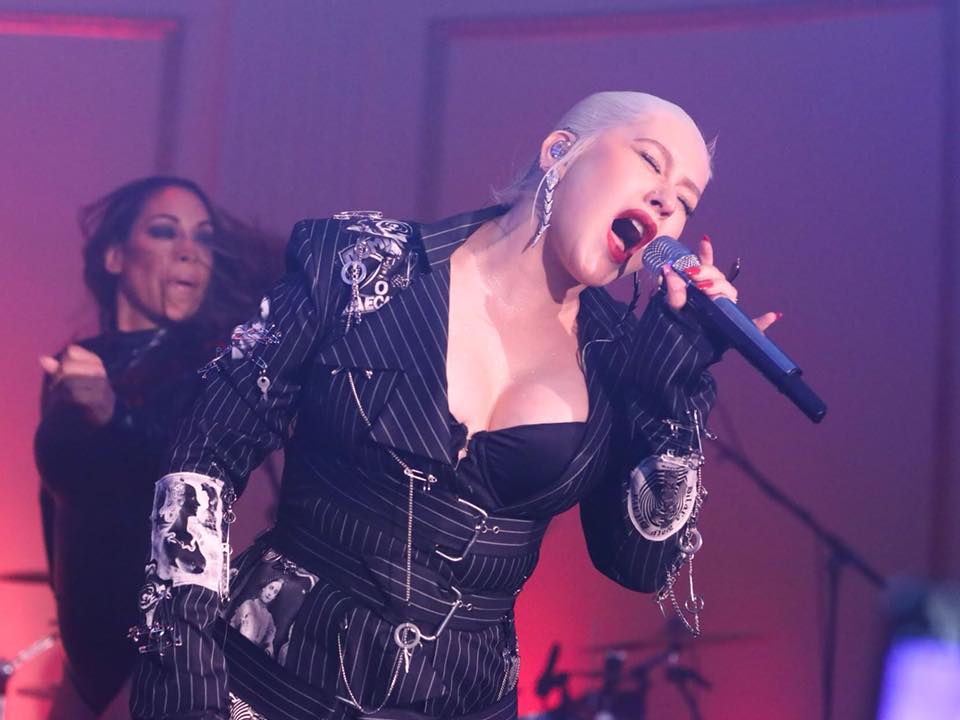 Hình ảnh Christina Aguilera biểu diễn trong đêm.
