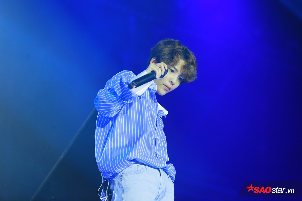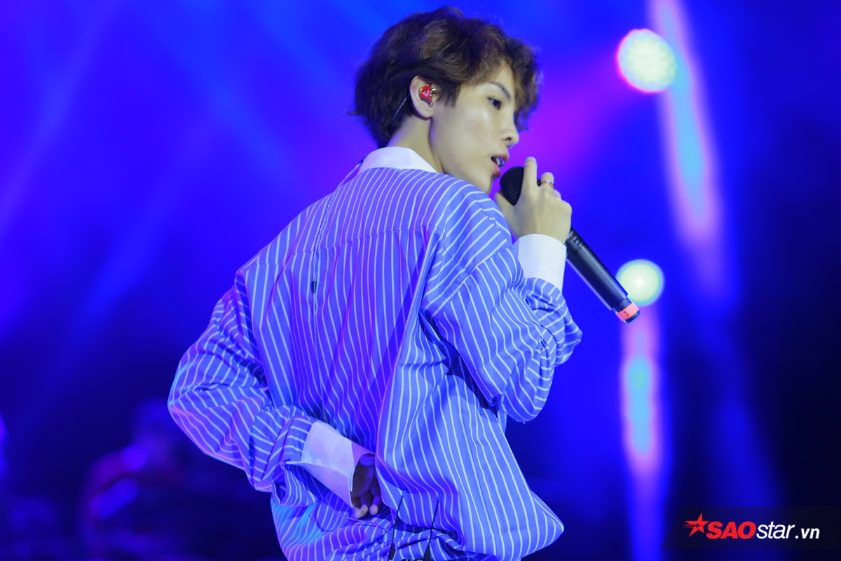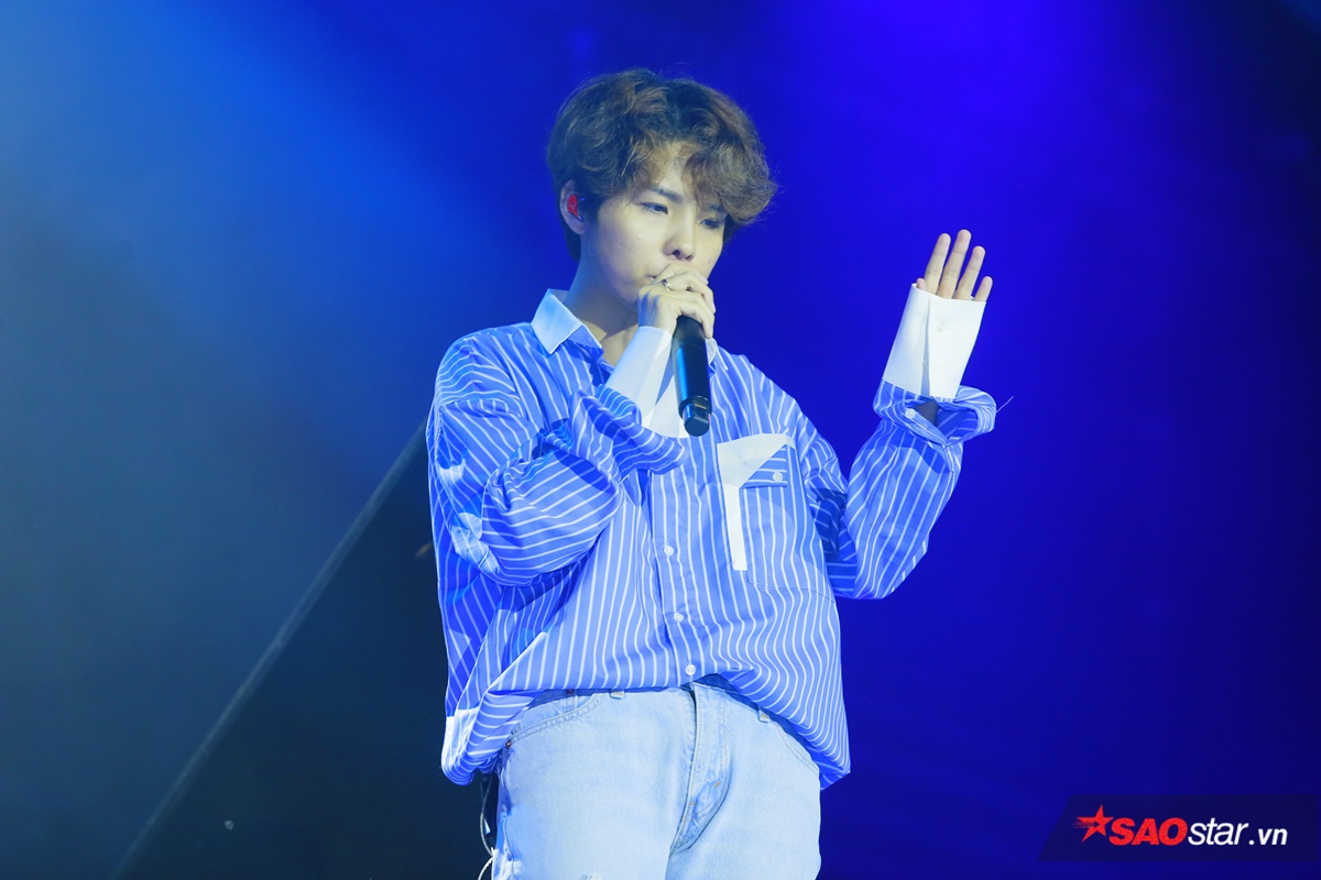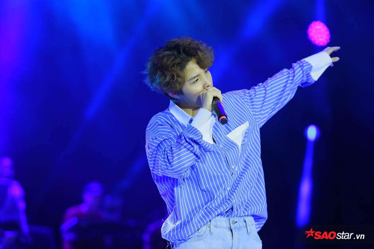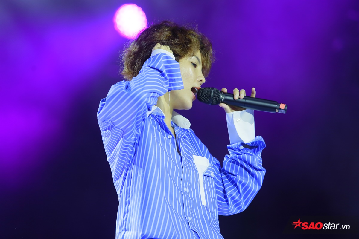 Buổi tổng duyệt diễn ra vào giữa buổi trưa khá oi bức nhưng Vũ Cát Tường không hề tỏ ra mệt mỏi mà “quẩy” sung hết sức.