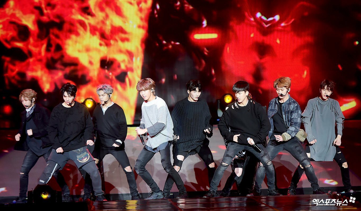 Hình ảnh của các chàng trai trong showcase debut vào hôm qua. Nhờ có bước đệm hoàn hảo từ chương trình sống còn, Stray Kids nhanh chóng thu hút được sự quan tâm của dư luận.