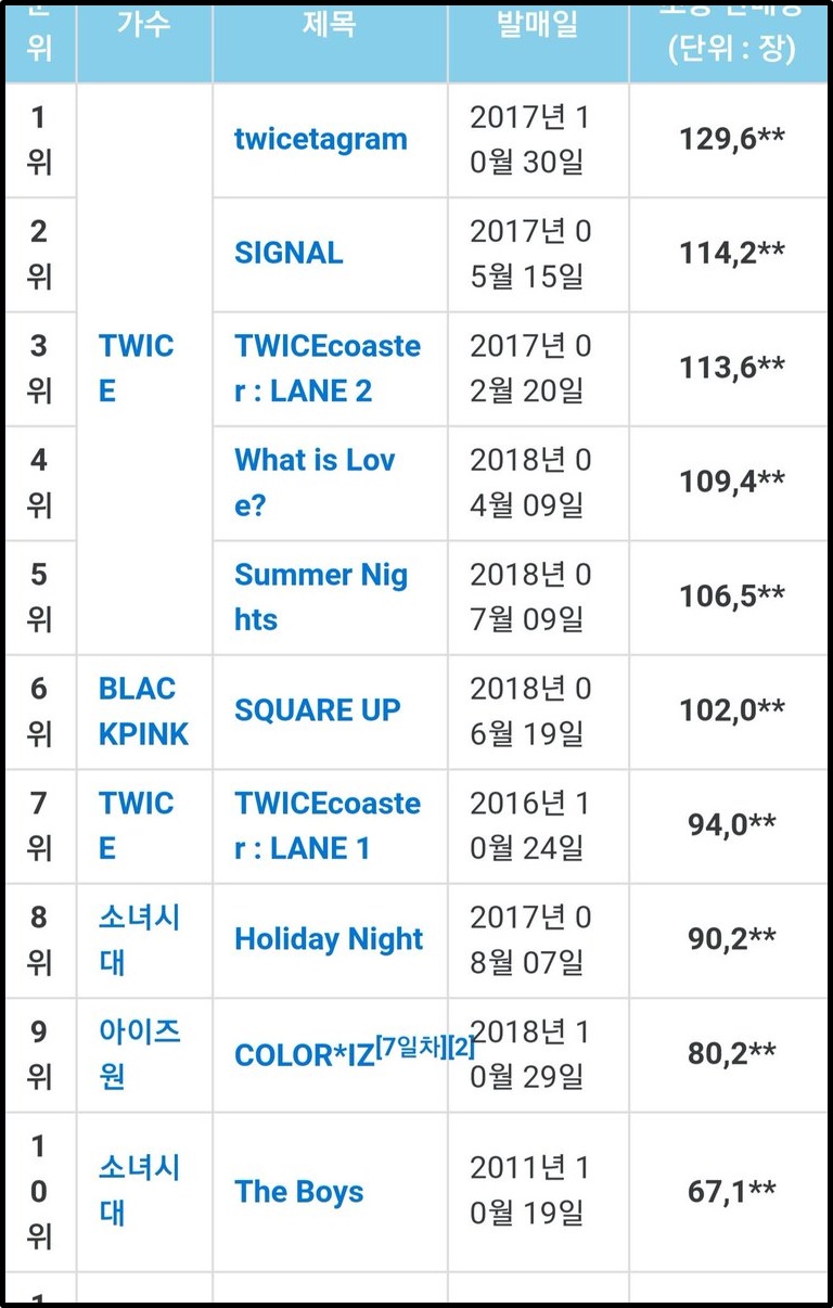 Ngày 29/10, sau bao ngày chờ đợi, tân binh IZ*ONE đã chính thức được ra mắt khán giả với mini album mang tên COLOR * IZ. Dù chỉ là một tân binh nhưng nhóm nhạc này đã nhanh chóng gây bão người hâm mộ khi liên tiếp đạt được những thành tích cao về mảng doanh số. Đặc biệt, mới đây IZ*ONE gây chú ý khi bất ngờ lọt top những nhóm nhạc nữ có album bán chạy nhất tuần qua.
