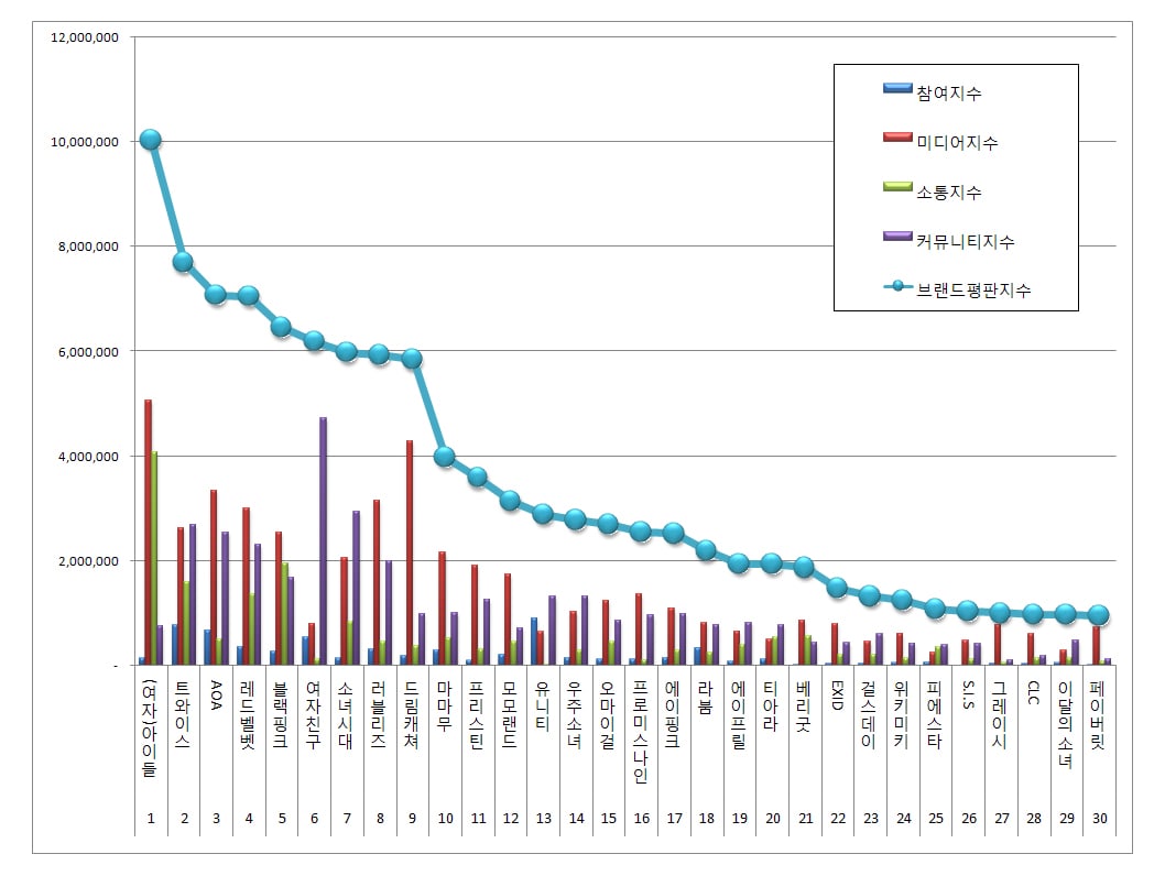 BXH giá trị thương hiệu girlgroup tháng 6 vừa được công bố và kết quả khiến nhiều người không khỏi bất ngờ. Tân binh nhà Cube vượt qua các “gà cưng” đến từ Big 3 để nắm giữ vị trí top 1. Theo thống kê từ viện nghiên cứu doanh nghiệp Hàn Quốc với tổng số liệu từ ngày 8/5 đến 7/6, số điểm của các cô gái (G)I-DLE lên đến 10,038,719. Các từ khoá được tìm kiếm về nhóm nhiều nhất: “LATATA”, “The Show”, “debut”. Bên cạnh đó, girlgroup nhà Cube nhận được 63,55% ý kiến tích cực với các tính từ có tần suất xuất hiện thường xuyên là “hot”, “pretty”, “exciting”.