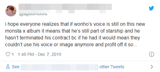 Chính sự quyết định đầy bất ngờ này của Starship Entertainment khiến MONBEBES tin rằng Wonho vẫn tiếp tục hợp đồng với công ty chủ quản, điều này khiến các fan hâm mộ càng thêm hy vọng vào sự trở lại của anh chàng.
