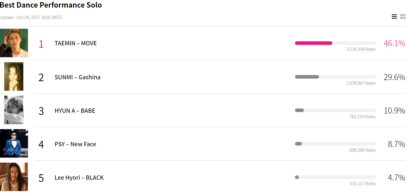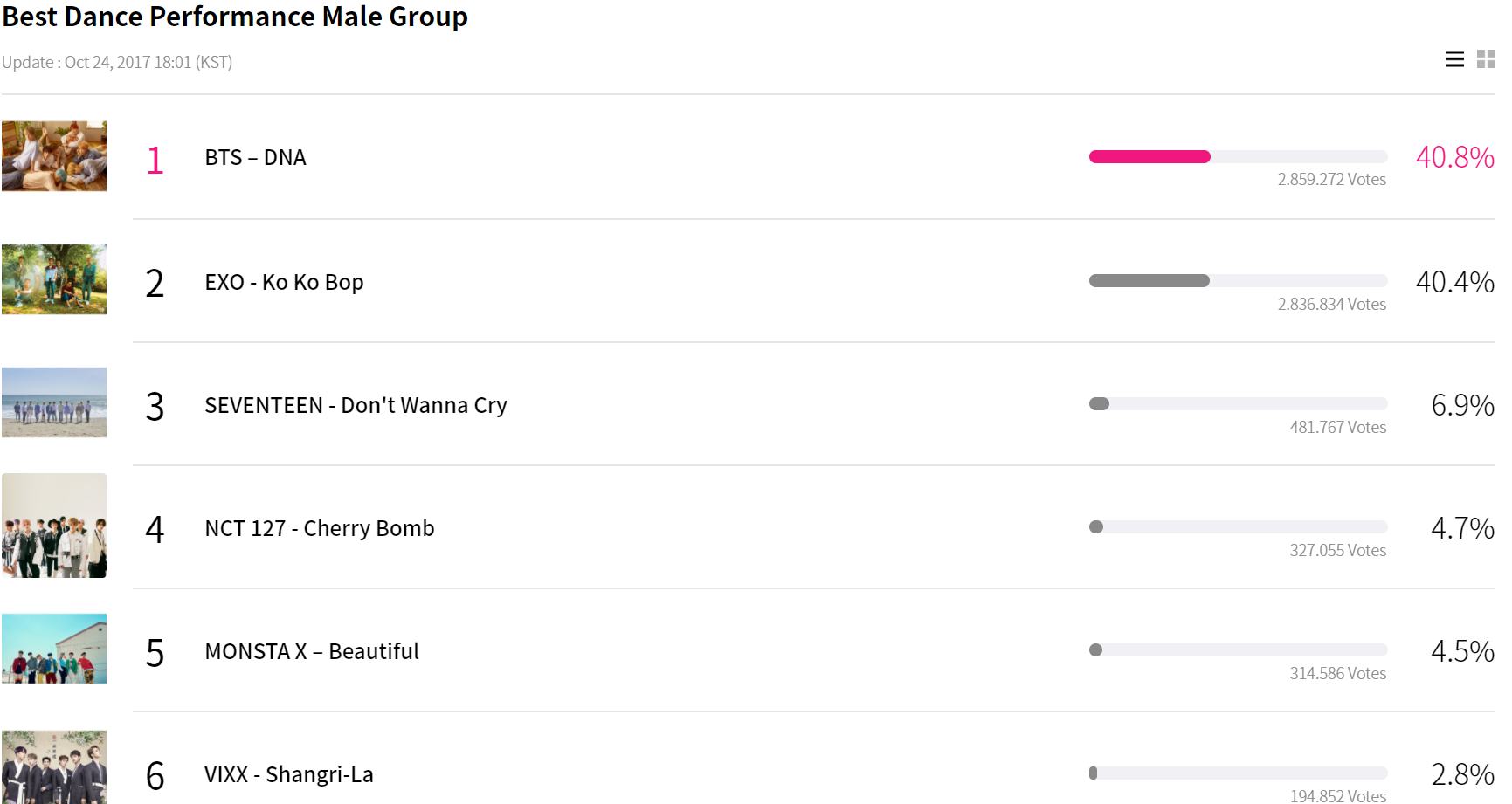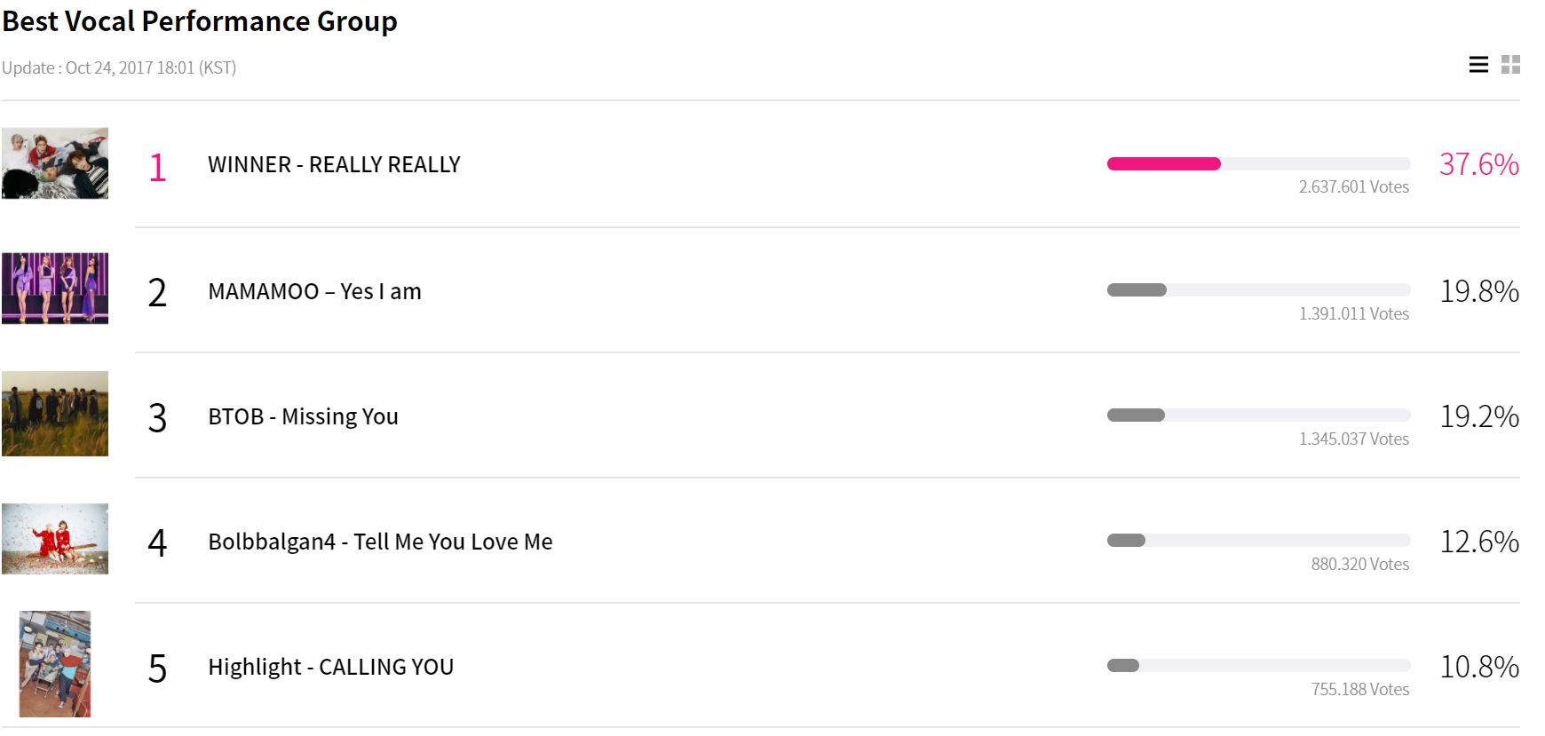 Cùng điểm qua xếp hạng của các hạng mục đề cử MAMA 2017 tính đến 18h ngày 24/10.