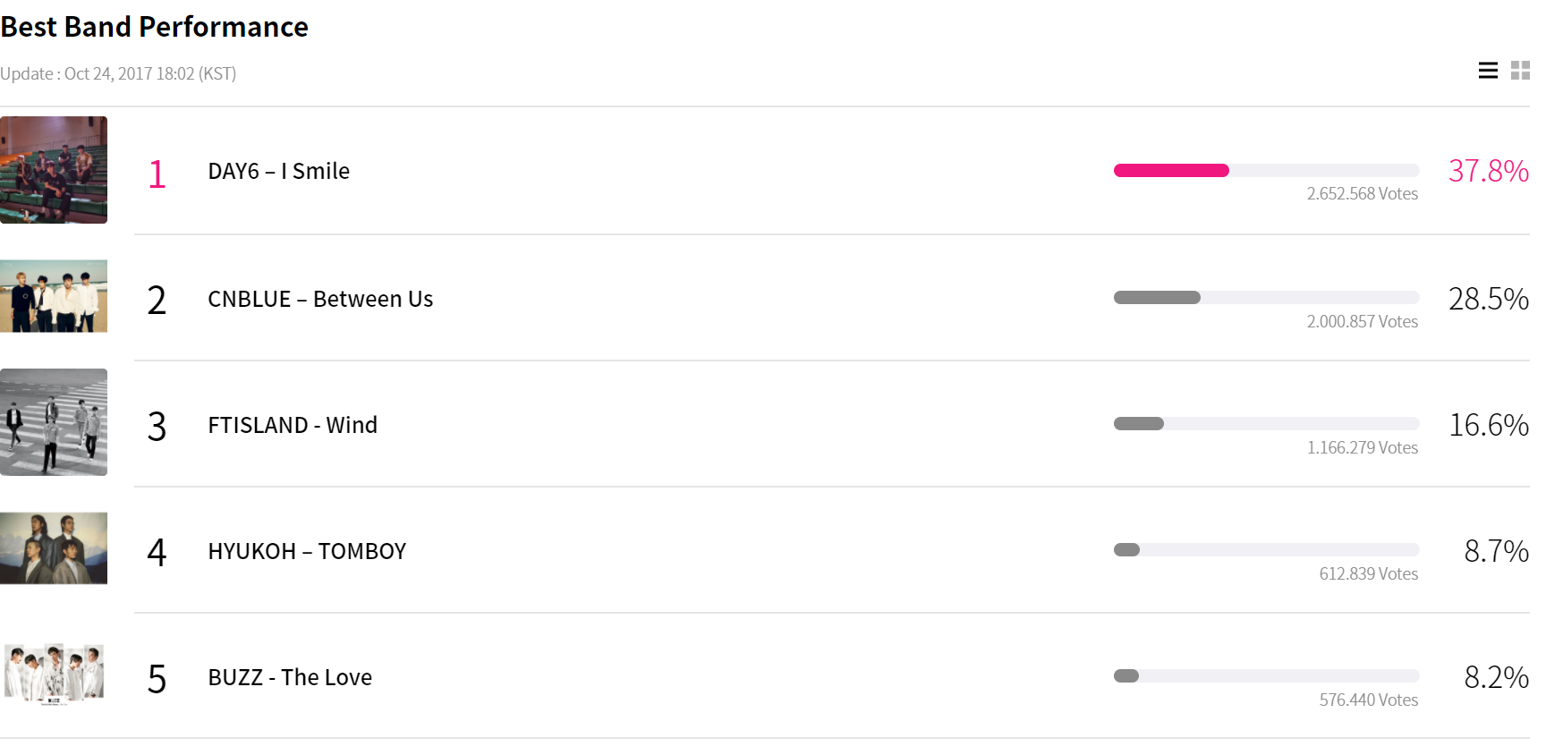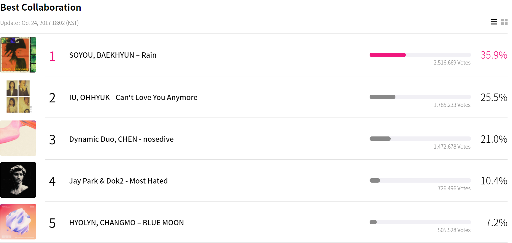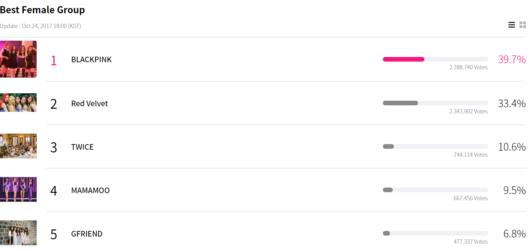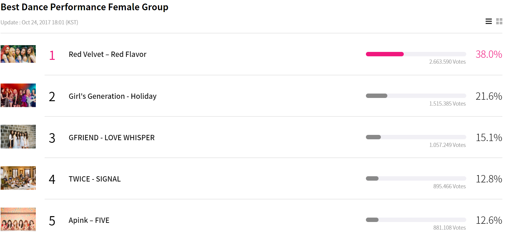 Cùng điểm qua xếp hạng của các hạng mục đề cử MAMA 2017 tính đến 18h ngày 24/10.