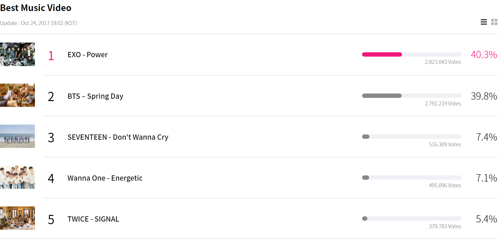 Dù chỉ là giải phụ nhưng MV xuất sắc nhất vẫn là “danh dự” của các fan nên hạng mục này cũng không kém phần quyết liệt.