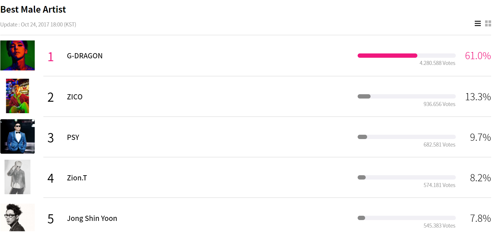 Cách biệt lớn thế này, Nam Nghệ sĩ xuất sắc nhất của MAMA 2017 là G-Dragon chứ còn ai vào đây nữa?