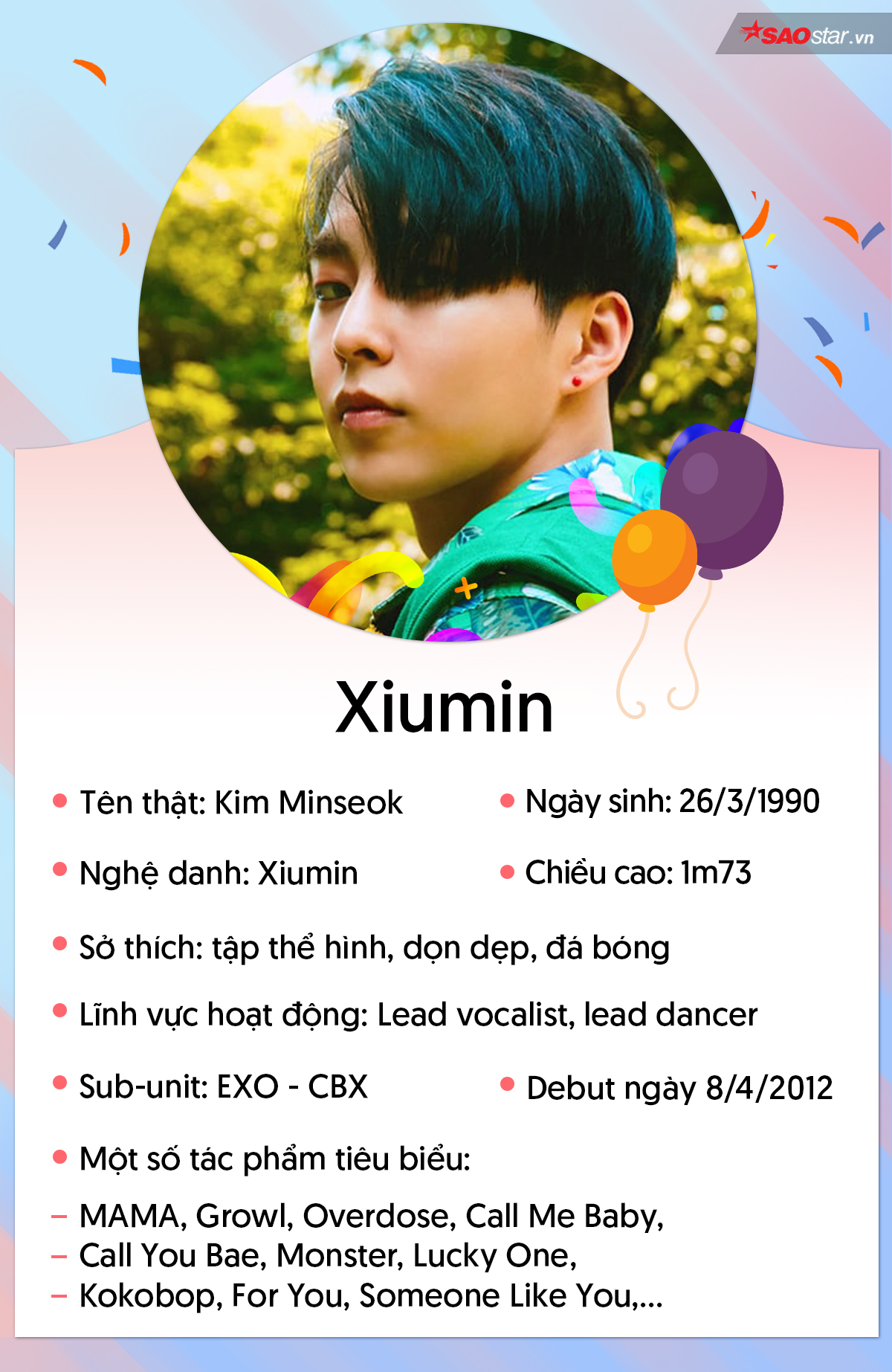 Hôm nay, nhân dịp Xiumin thêm 1 tuổi mới, mong anh luôn vui vẻ, hạnh phúc và chinh phục được nhiều “đỉnh” cao hơn trong cả sự nghiệp idol lẫn con đường học tập. Bên cạnh đó, chúc cho màn comeback sắp tới của nhóm nhỏ EXO - CBX tại Nhật thật thành công.
