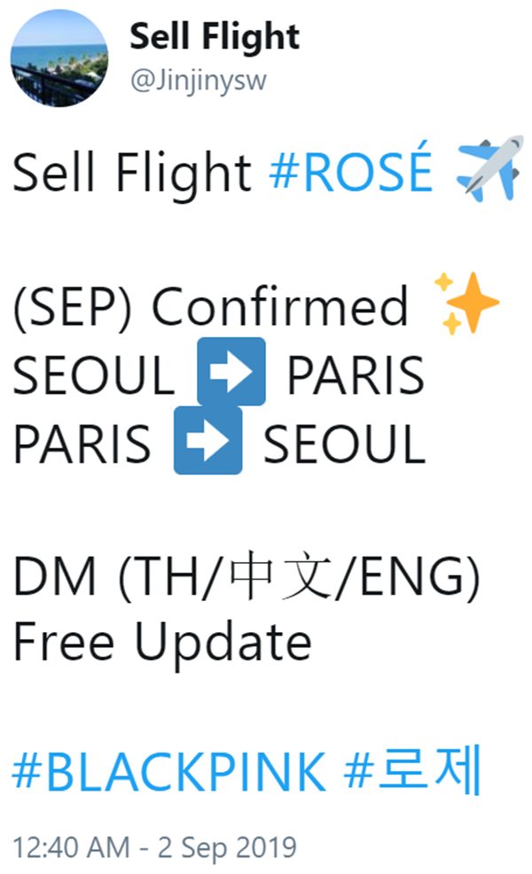 Chỉ 1 ngày sau đó, tin đồn Rosé chuẩn bị sang Paris để quay MV debut bỗng xuất hiện và được Blinks bàn tán sôi nổi. Nguyên do xuất phát từ một tài khoản chuyên bán thông tin chuyến bay của idol đã đăng bán lịch bay của main vocal BlackPink với địa điểm là Paris và thời gian trong tháng 9 này.