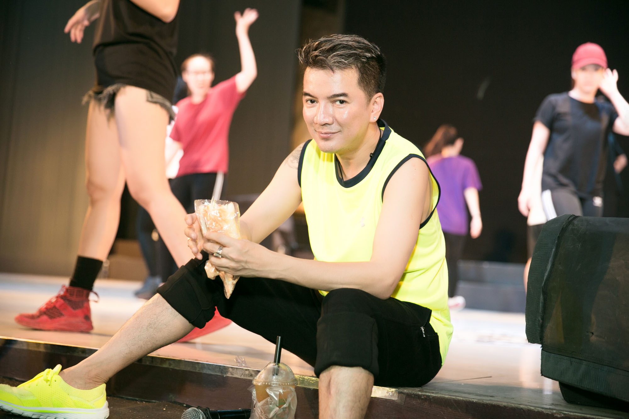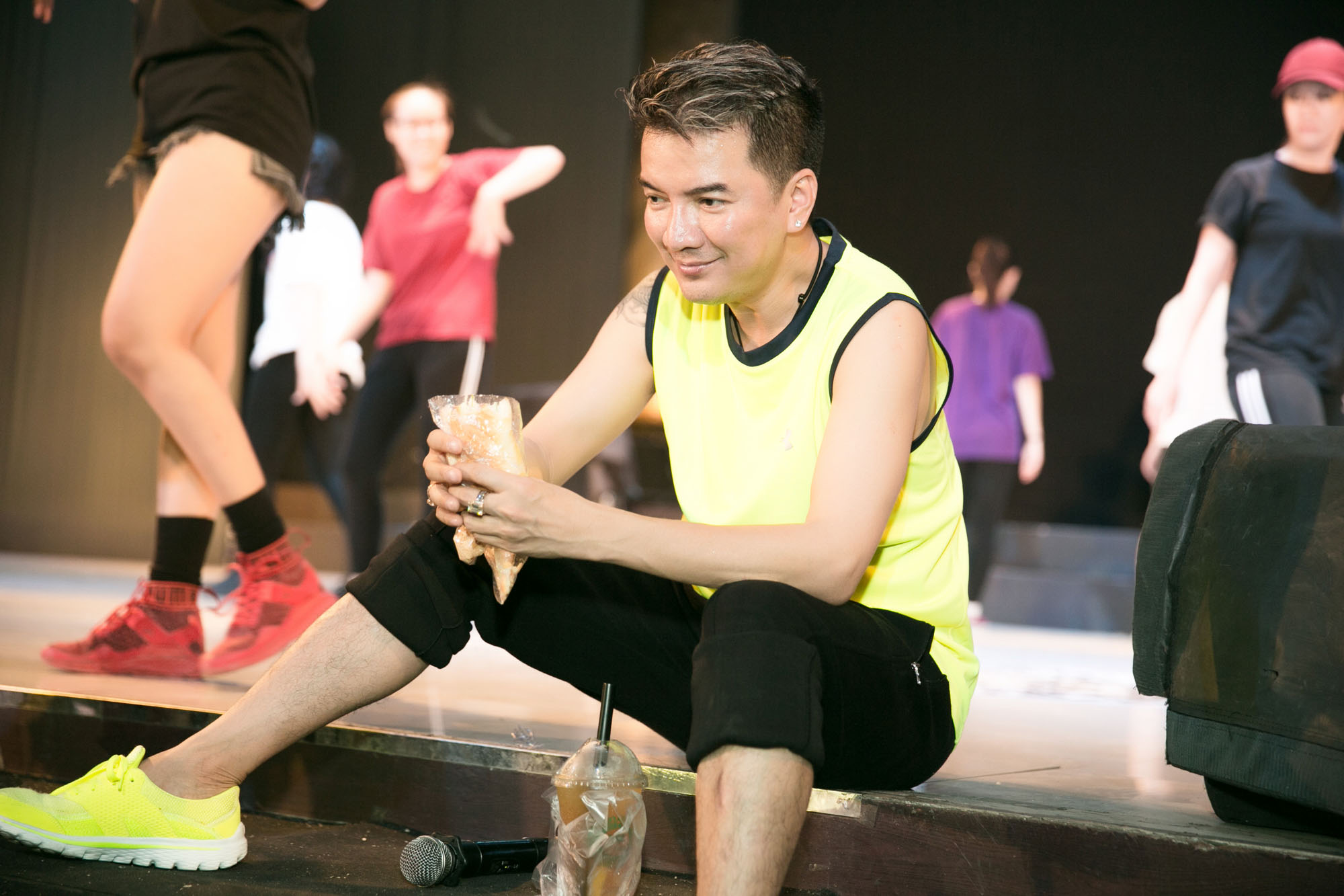Mới đây, Đàm Vĩnh Hưng cùng e-kip đã có buổi luyện tập cho hai đêm nhạc Diamond Show kỷ niệm 20 năm ca hát diễn ra tại Nha Trang (1/1) và Đà Nẵng (7/1). Đến từ rất sớm, Mr. Đàm tranh thủ xem lại kịch bản, trò chuyện cùng biên đạo múa để ráp chương trình cùng các nghệ sĩ khách mời và nhóm nhảy. Dù mướt mồ hôi trên sàn tập trong hơn 6 giờ, giọng ca Lạc mất em vẫn thể hiện tinh thần tràn đầy năng lượng. Anh chỉ kịp nhai vội ổ bánh mì trong 10 phút nghỉ giải lao ngắn ngủi để tiết kiệm thời gian cho cả e-kip.