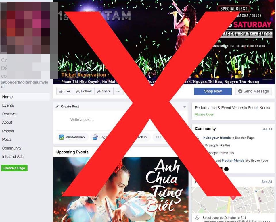 Tuy nhiên, sau đúng 1 ngày thông tin được truyền đi nhanh chóng thì cũng lập tức xuất hiện fanpage không chính chủ, đưa tin về sự kiện Concert tại Hàn Quốc của Mỹ Tâm.