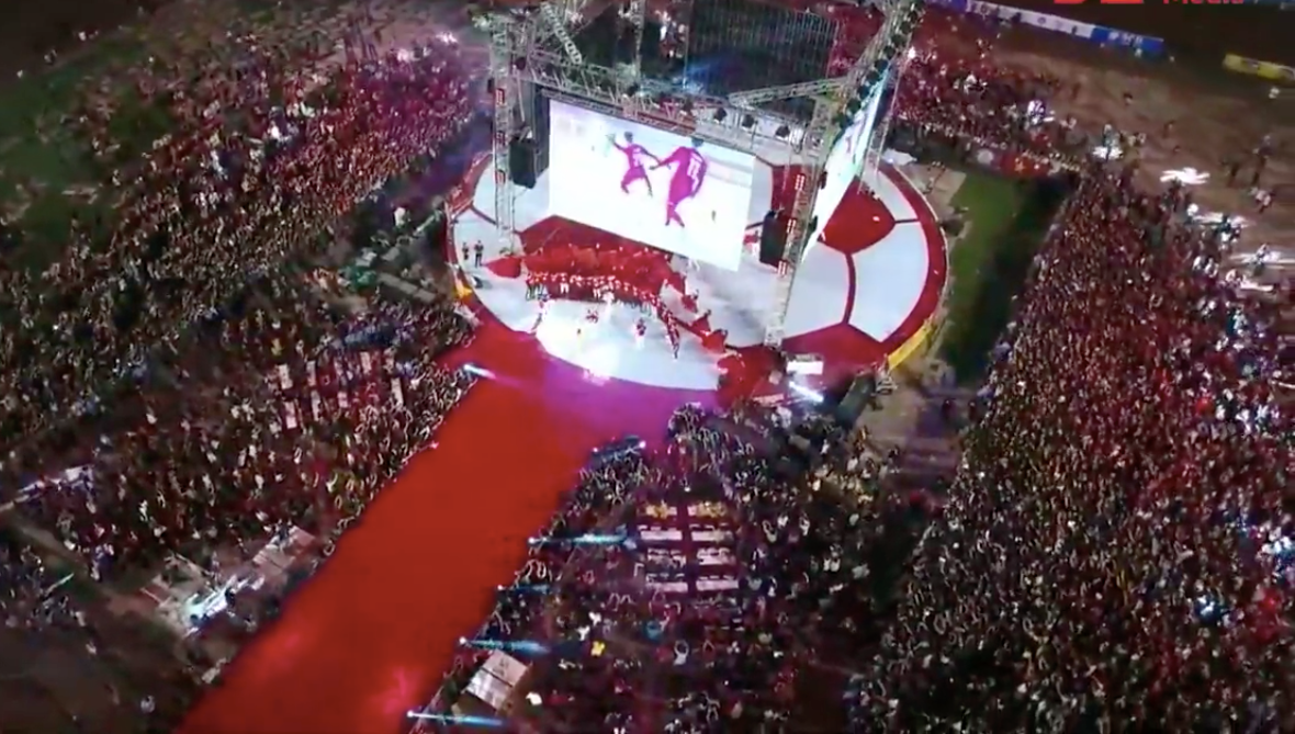 Tiết mục được hàng chục ngàn khán giả có mặt tại sân Thống Nhất hát theo.