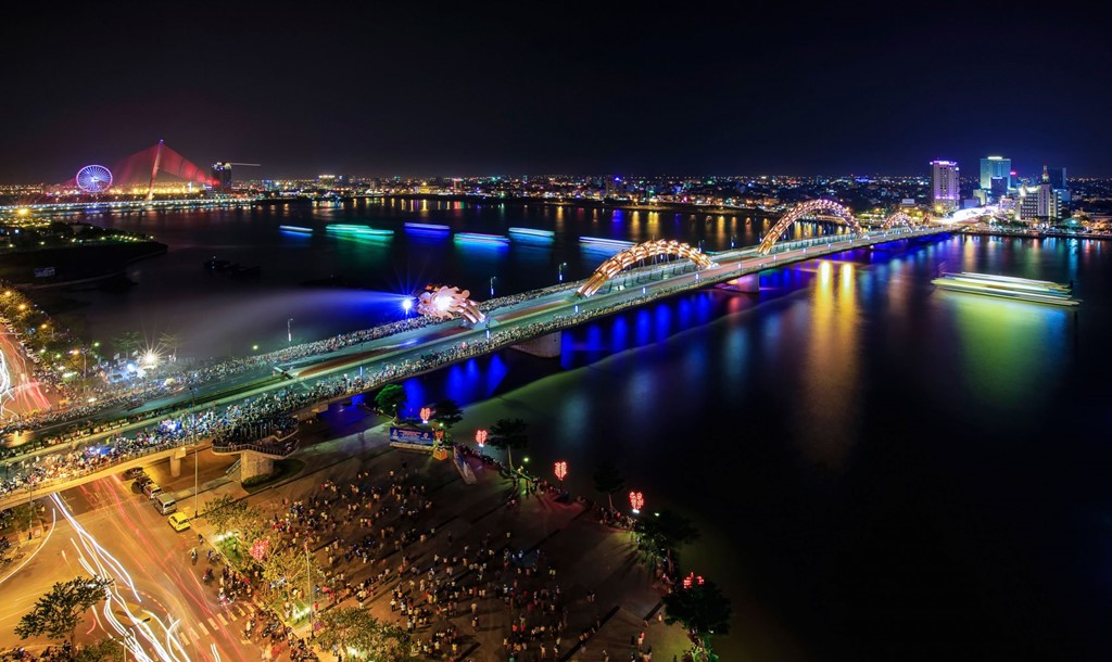 8. Đà Nẵng: Thành phố hiện đại nằm ven sông này đã lọt vào danh sách “phải đến” của nhiều người. Nơi đây trở nên lộng lẫy vào ban đêm, khi ánh đèn neon bừng sáng dọc sông Hàn. Vào tối cuối tuần, cầu Rồng được thắp sáng và phun lửa. Đà Nẵng còn có một bãi cát dài nằm ở phía Đông để du khách thư giãn.