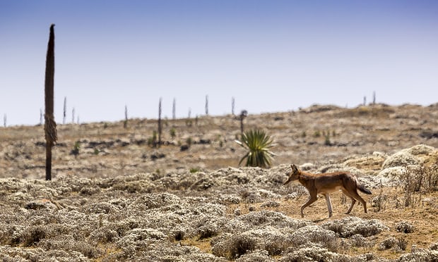 Rét buốt bởi gió mạnh, chúng tôi lái xe từ từ xuyên qua các vùng đất tuyết giá lạnh một cách khốn khổ. Những con chuột chũi khổng lồ, với những chiếc răng như trong hoạt hình, xuất hiện trong những cái hang của chúng như những con rối. Và ở đó, chạy dọc theo con đường, chúng tôi phát hiện ra con sói Ethiopia - một con chó rừng đỏ sậm, đẹp đẽ.