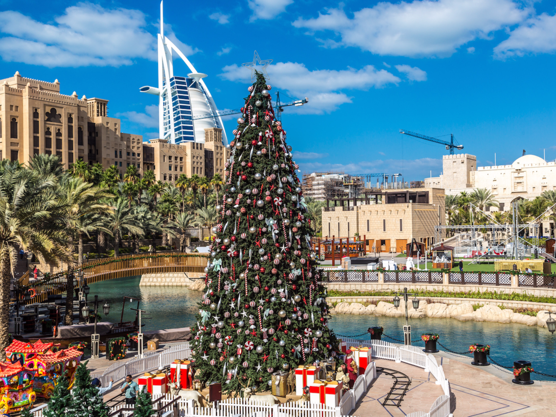 Dubai, Các tiểu vương quốc Arập thống nhất: Người ta cho rằng không có gì mà Dubai không thể cung cấp cho du khách trong dịp lễ Giáng sinh. Các cuộc đấu tuyết, các khu chợ Giáng sinh nhộn nhịp, chuyến viếng thăm bất ngờ của ông già Noel - tất cả những điều đó và nhiều hơn nữa sẽ có tại Lễ hội mùa đông Dubai tại Nhà hát Thành phố Dubai Media City. Và nếu bạn đang tìm kiếm một nơi để thưởng thức bữa tối lãng mạn cùng với “người đặc biệt” của mình, hãy đặt chỗ ở Cirque de Cuisine để có một bữa tối cầu kỳ với những món ăn hàng đầu và cũng không kém phần thú vị với các màn biểu diễn xiếc và yêu tinh độc đáo.