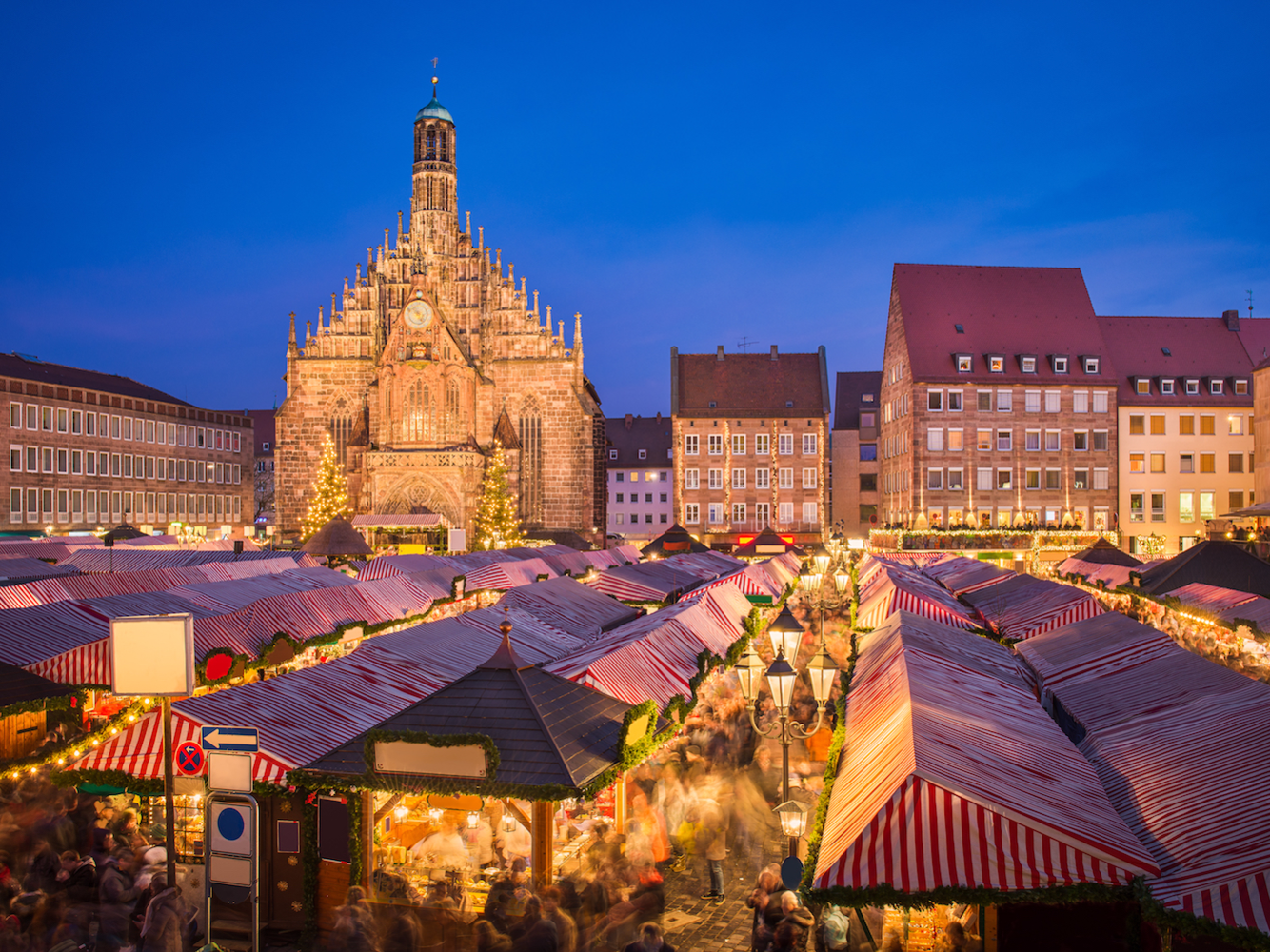 Nuremberg, Đức: Chợ Giáng sinh của Nuremberg không lớn như ở Strasbourg, nó cũng đã xuất hiện từ lâu đời và được coi là nơi nổi tiếng nhất trong nước. Trong khu chợ với hơn 200 gánh hàng rong, quảng trường trung tâm khu phố cổ này còn có nhà thờ Đức Mẹ tráng lệ. Nếu đã đến đây, hãy chắc chắn phải thử một cốc Glühwein - một loại rượu nóng có pha với gia vị.