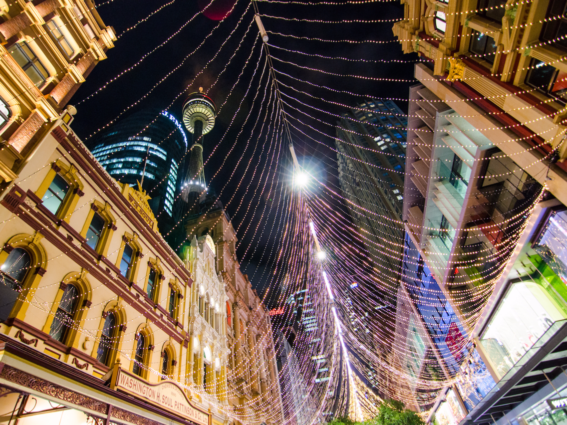Sydney, Úc: Đặc trưng của lễ Giáng sinh ở Sydney là ánh sáng của cây thông Giáng sinh Martin Place, cũng như các buổi hòa nhạc, các khu chợ chỉ có vào dịp lễ và các cửa hàng bách hóa được trang trí lộng lẫy. Nếu bạn thích cảm giác lãng mạn, hãy đi bộ dọc theo Pitt Street Mall, “đại lộ ánh sáng” lấp lánh với gần 80.000 chiếc đèn LED.