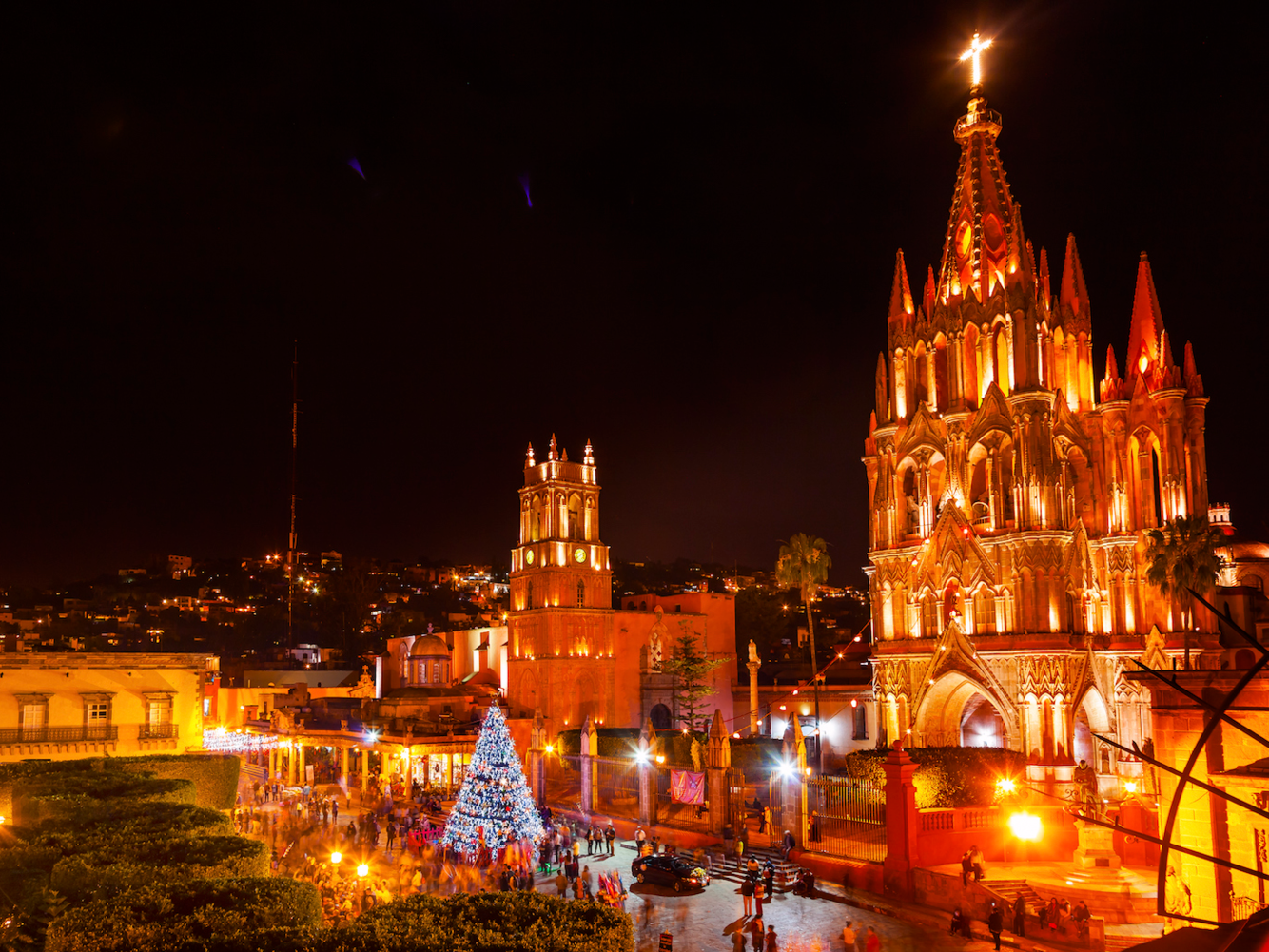 San Miguel de Allende, Mexico: San Miguel de Allende là thành phố giàu lịch sử, văn hóa và nghệ thuật, được bình chọn là thành phố tốt nhất thế giới trong năm nay bởi khách du lịch. Trong suốt lễ Giáng sinh, có nhiều hoạt động mang nét đặc trưng với bối cảnh là màu sắc sống động của thành phố và kiến trúc baroque độc đáo. Người dân địa phương thường nhắc tới chuyến hành hương của Mary và Joseph tới Bethlehem, và El Jardín - quảng trường chính của thành phố - trở nên sống động hơn bao giờ hết với âm nhạc và khiêu vũ. Hãy nếm thử và bạn có thể ăn no căng bụng với bánh mì ngọt (được dân địa phương gọi là rosca de reyes) và ponche - một đồ uống dành riêng cho kì nghỉ được làm từ trái cây và rượu brandy.