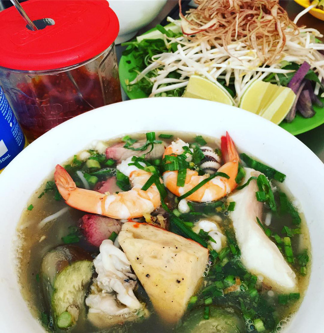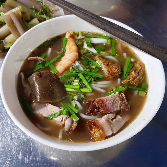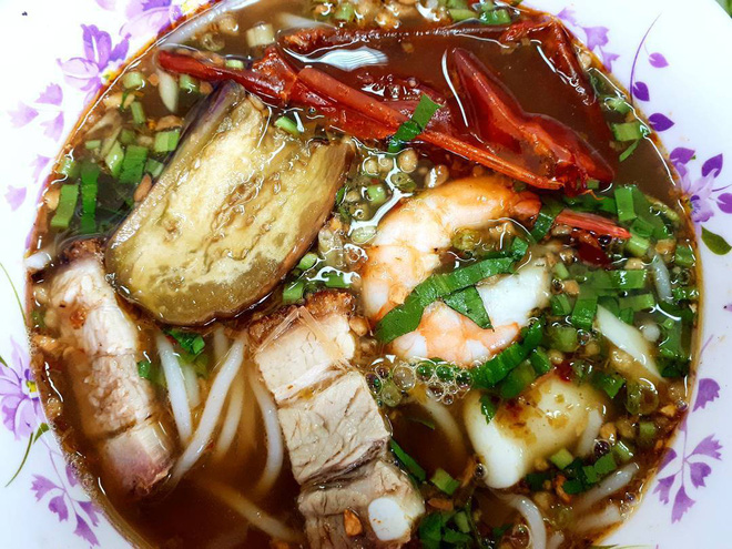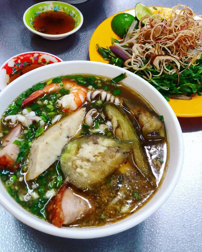 Nguyên liệu của tô bún mắm cực đa dạng và chất lượng với tôm, thịt, mực, thịt cá, chả, cà tím, kèo nèo và không thể thiếu rau sống. Cách ăn là cứ một đũa bún thì một đũa rau. Sau đó húp một muỗng nước lèo thơm mùi mắm nhẹ thoang thoảng. Nếu ăn được cay, cho thêm chút ớt vào tô bún thì món này càng ngon và dễ nghiện hơn.