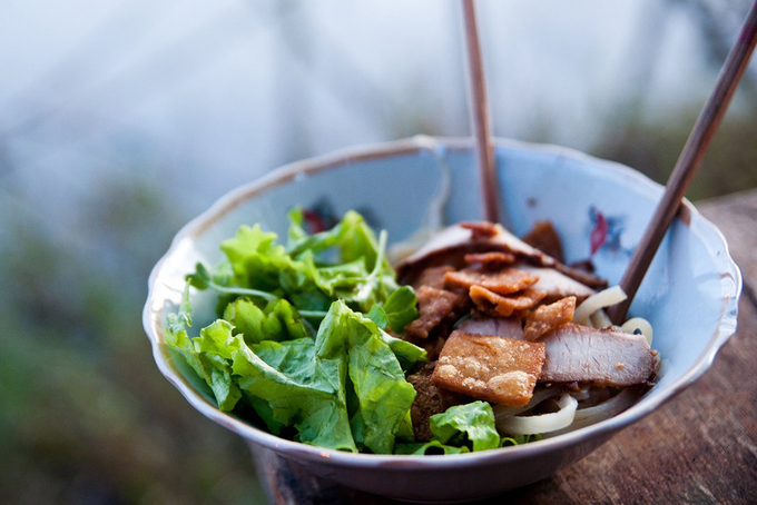 Hãy dừng chân tại một quán ven đường, gọi bát cao lầu từng được báo nước ngoài hết lời ca ngợi. Đây là đặc sản của phố Hội có từ thế kỷ 17. Một tô có chút mì cắt vừa ăn, thịt xíu, bì heo chiên giòn, và nhiều rau thơm ăn kèm. Bên cạnh cao lầu còn có bánh mì Phượng, cơm gà bà Buội, bún thịt xiên, bánh xèo giếng Bá Lễ… Ảnh: Guardian.