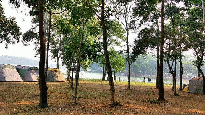 Đồng Mô (Sơn Tây): Đây là khu du lịch chỉ cách Hà Nội 40 km, với chi phí khá rẻ, phù hợp với các nhóm bạn trẻ hoặc gia đình. Ngoài khu cắm trại với nhiều trò chơi, bạn còn có thể ghé thăm Làng văn hóa các dân tộc Việt Nam ngay gần đó. Ảnh: Son Tinh Camp.