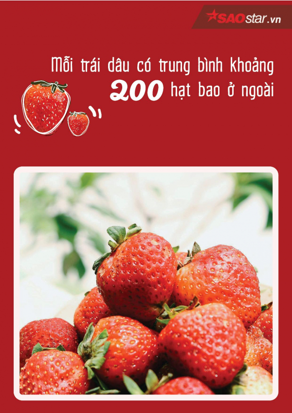 4. Dâu là loại trái cây duy nhất có hạt ở ngoài. Ước tính một trái dâu có trung bình khoảng 200 hạt bao bọc lấy chúng.
