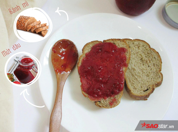 Chỉ cần vài lát bánh mì, một ít mứt dâu, vậy là bữa sáng đã sẵn sàng. Rất nhanh để thực hiện nhưng vẫn không thiếu chất dinh dưỡng, đặc biệt dành cho những ai thích ngủ nướng và sợ muộn giờ làm.